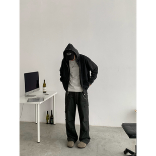 美式 高街oversize刺绣连帽卫衣女秋冬加绒加厚小个子宽松潮牌外套