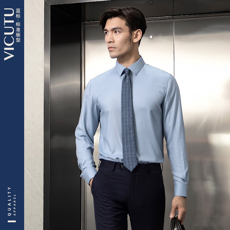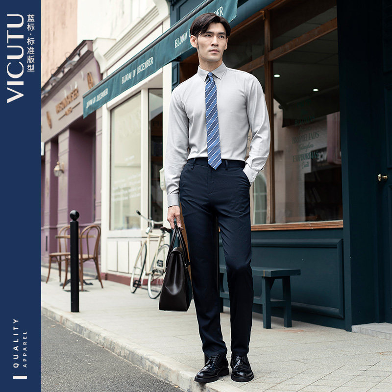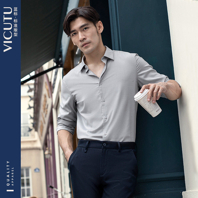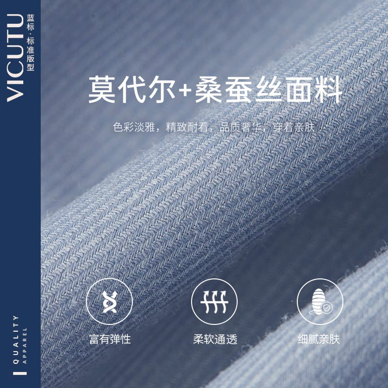 男长袖 VICUTU威可多衬衫 商务休闲桑蚕丝通勤职业衬衣 水光衬衫