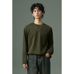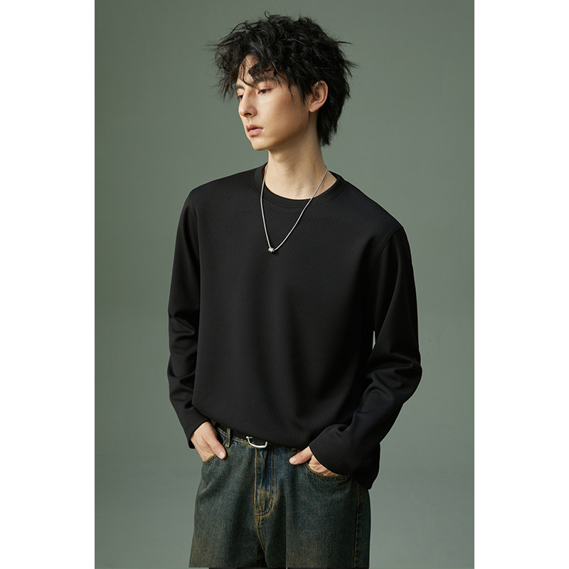打底体恤衫 新款 卫衣上衣 T恤男2026年春秋季 高级感条纹空气层长袖