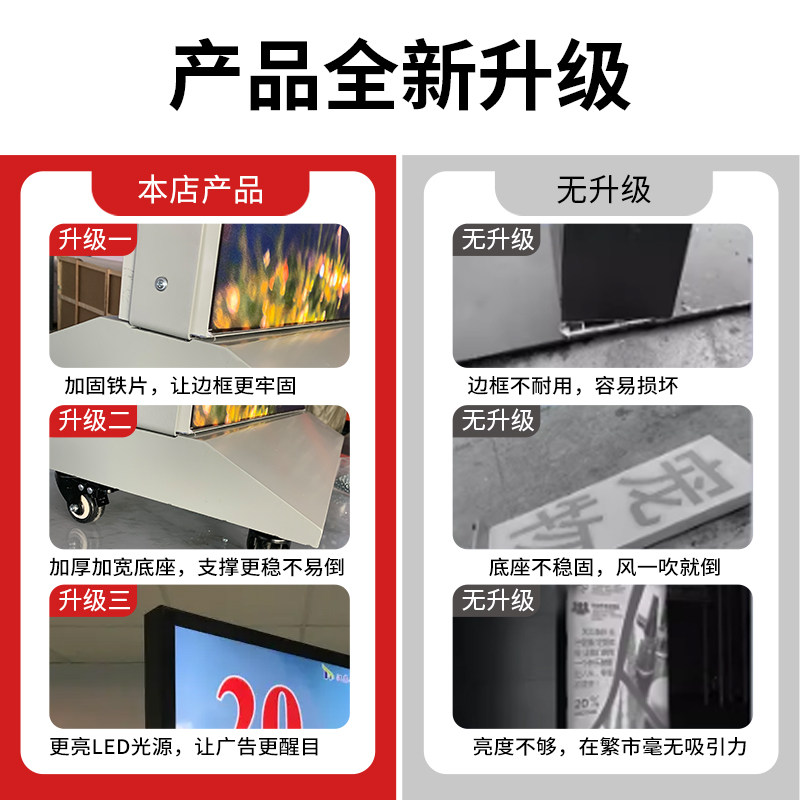 灯箱广告牌定做招牌户外门口烧烤展示牌充电立式 落地移动led发光