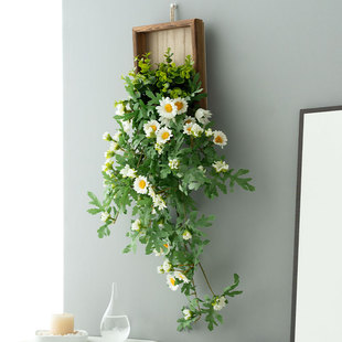 ins风仿真植物墙面装 饰小雏菊挂件室内墙壁假花藤蔓电视背景遮丑