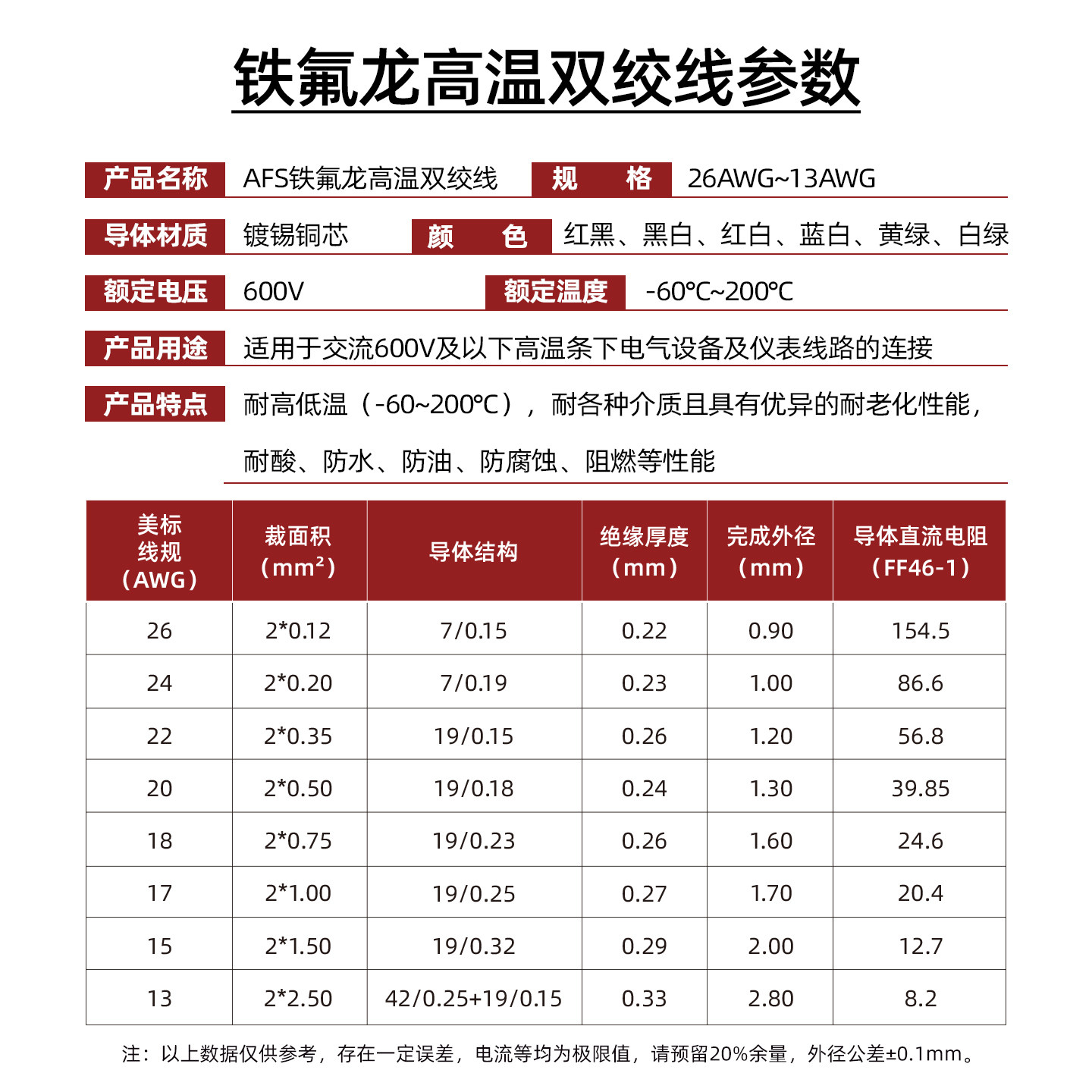 2.5平方2芯双绞线 0.5 特氟龙双绞高温线AFS铁氟龙双绞线0.12 0.2