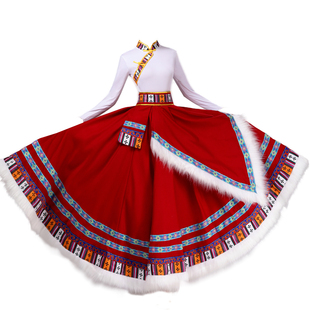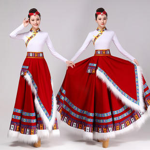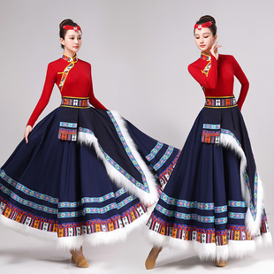 藏族舞蹈大摆裙演出服装 少数民族成人学生练习艺考藏族舞蹈练功服