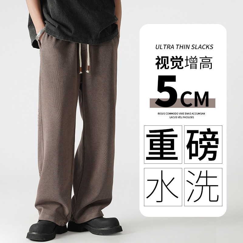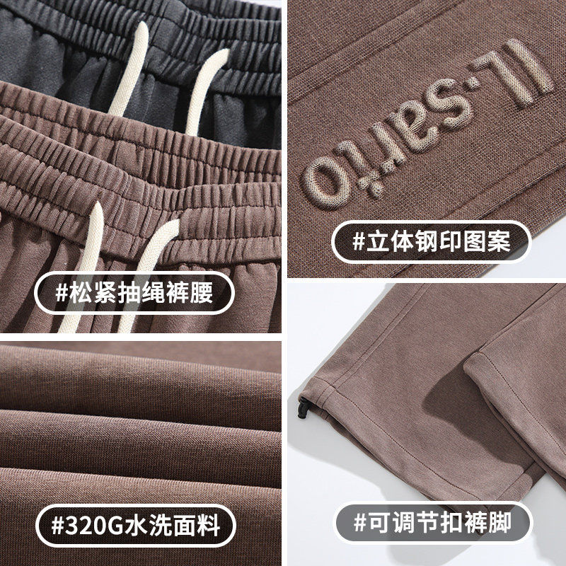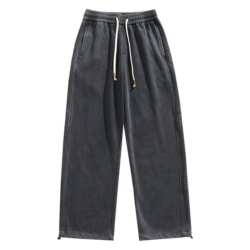 男宽松水洗做旧阔腿长裤 潮牌钢印直筒运动休闲裤 美式 320g重磅夏季