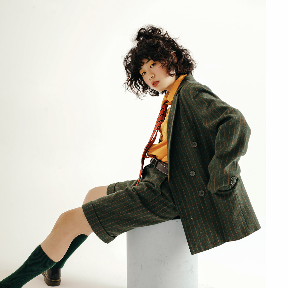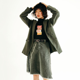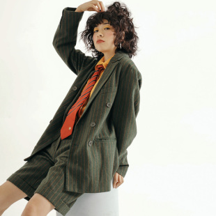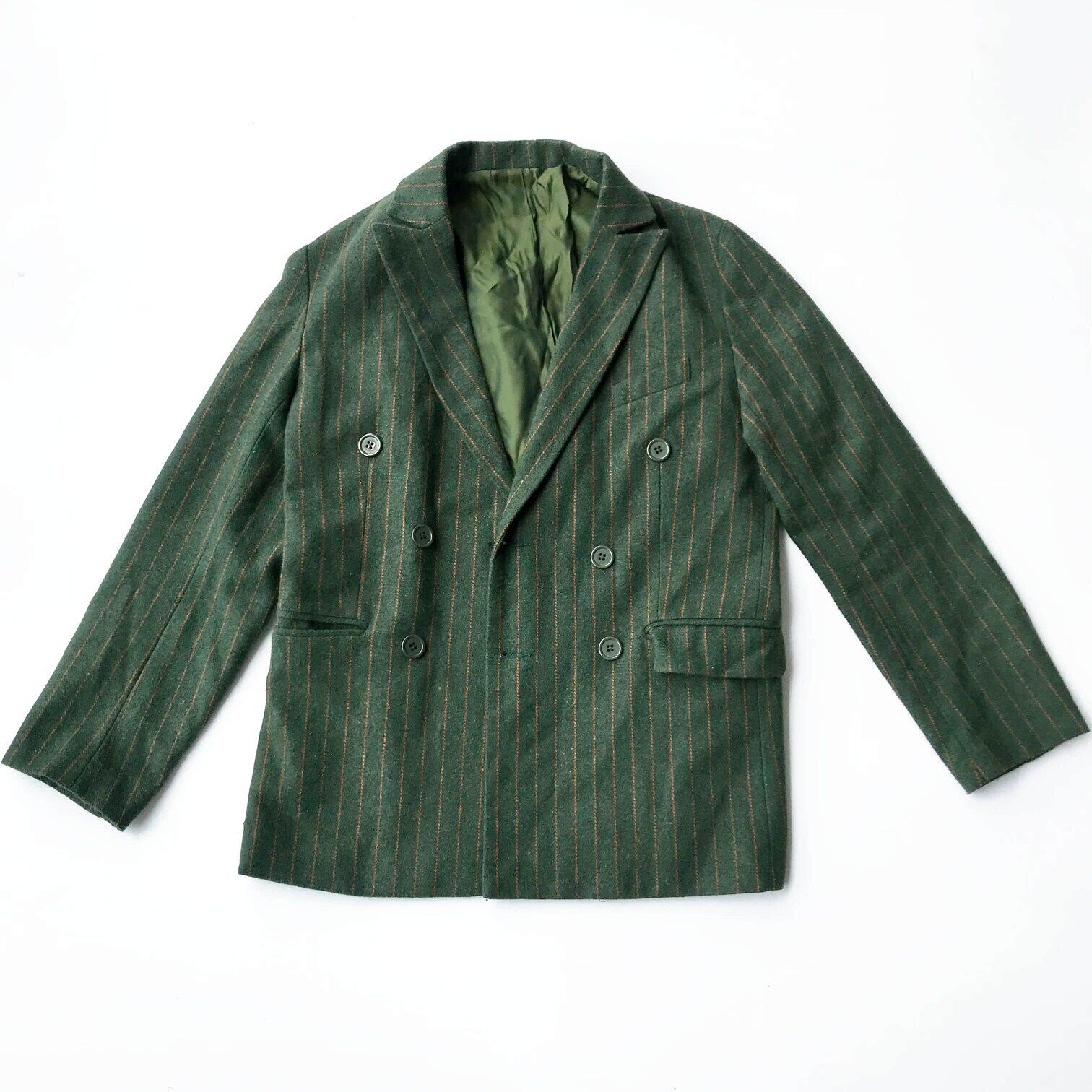 休闲饮料chill 外套百搭绅士呢料 drink日系复古墨绿宽松西装