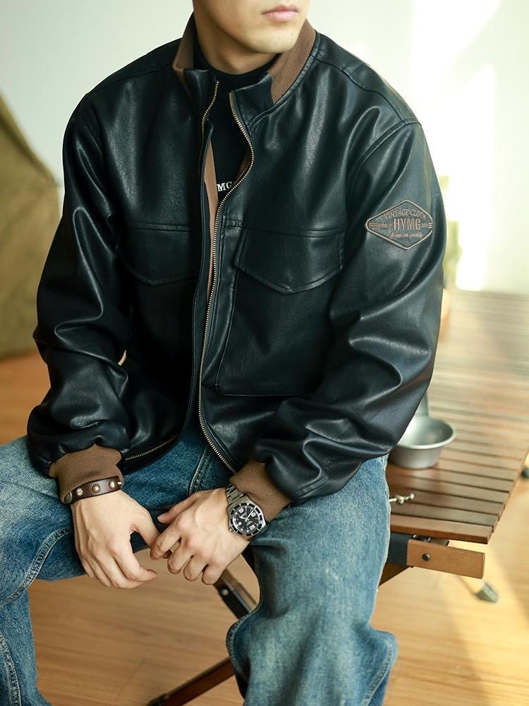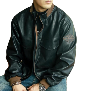 美式 街头飞行员机车服夹棉外套潮 复古高级感PU皮衣夹克男女秋冬季