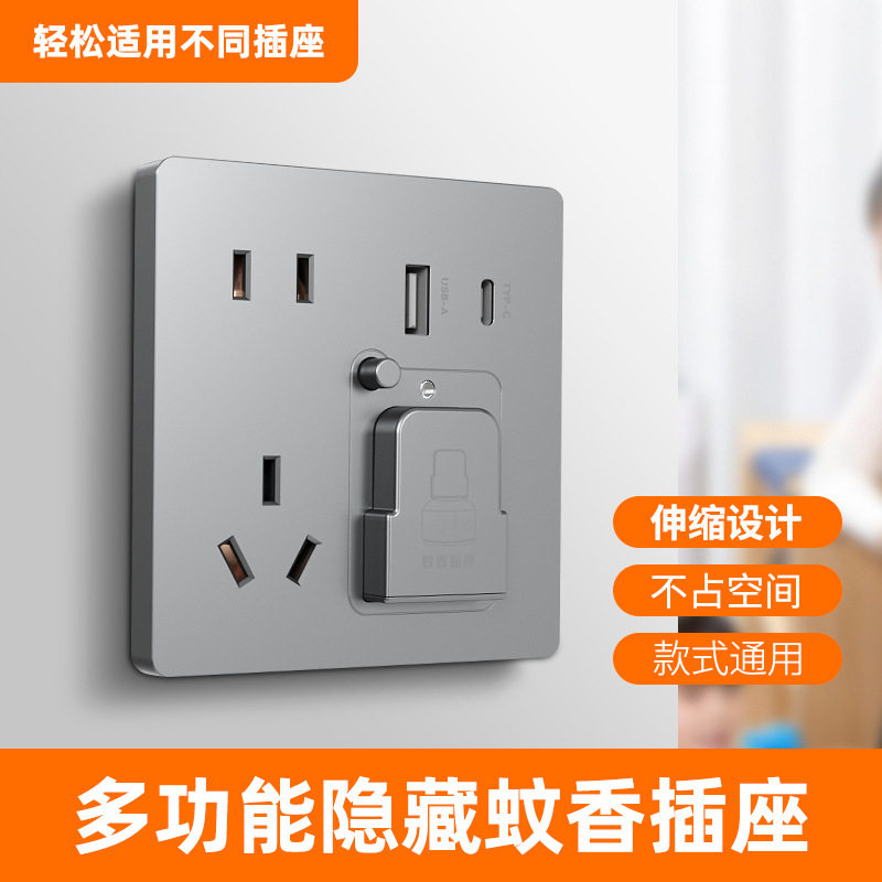 86型墙壁灭蚊液固定插座家用室内驱蚊器电蚊香液五孔usb插座