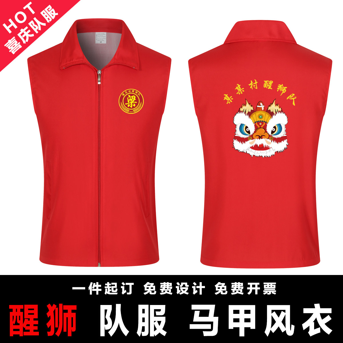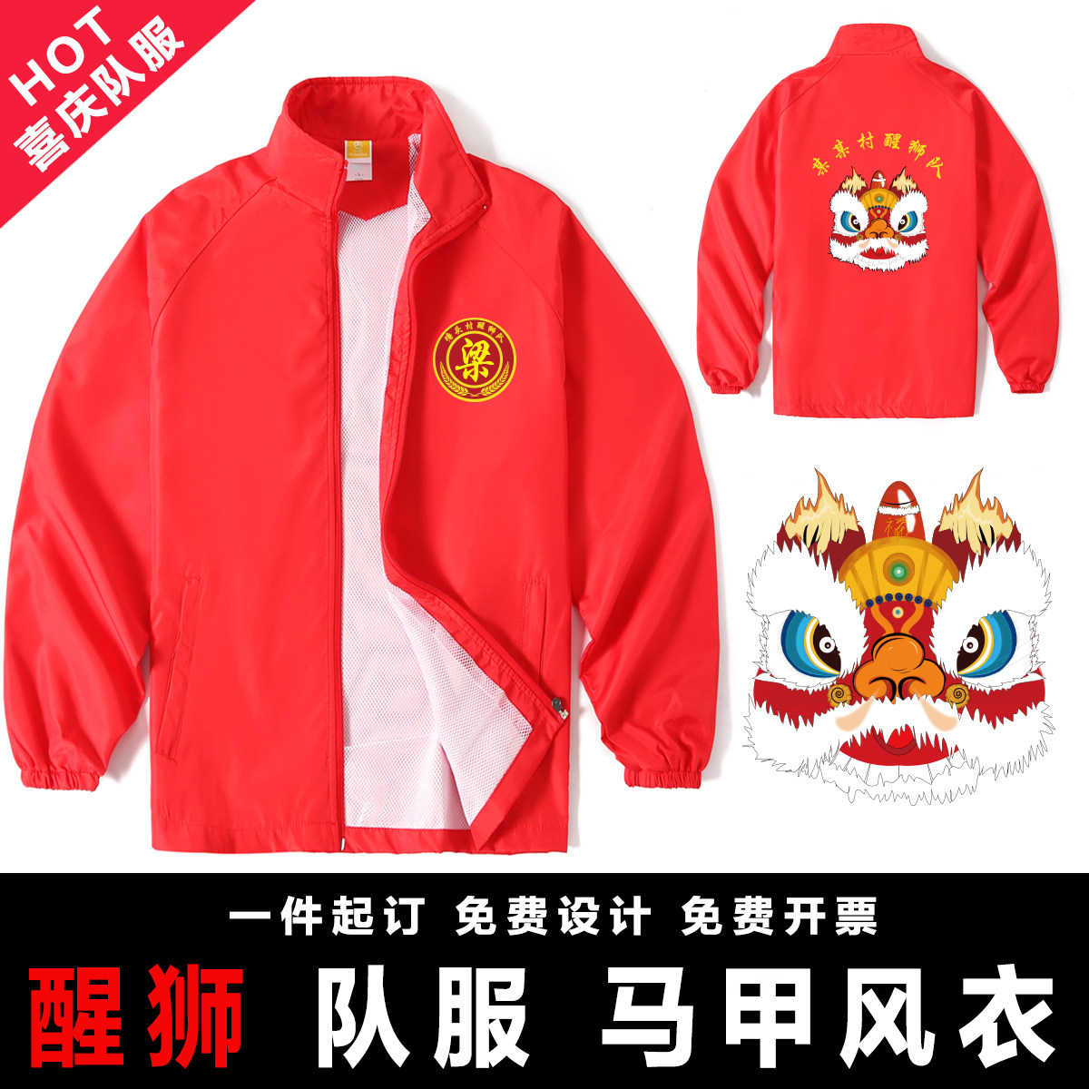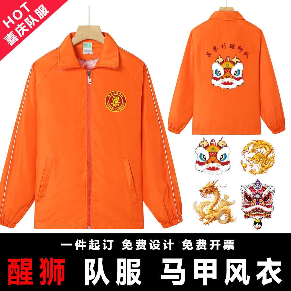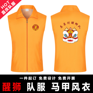 国潮舞狮醒狮舞龙龙狮头队服风衣马甲喜庆红色橙色队服定制 印字