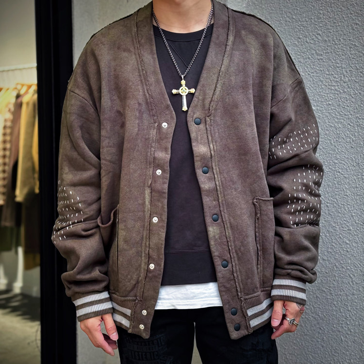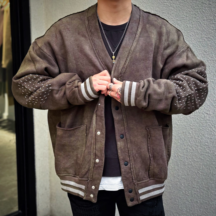 棒球开衫 特殊不均匀手工植物染日本刺子工艺道袍式 Collectors