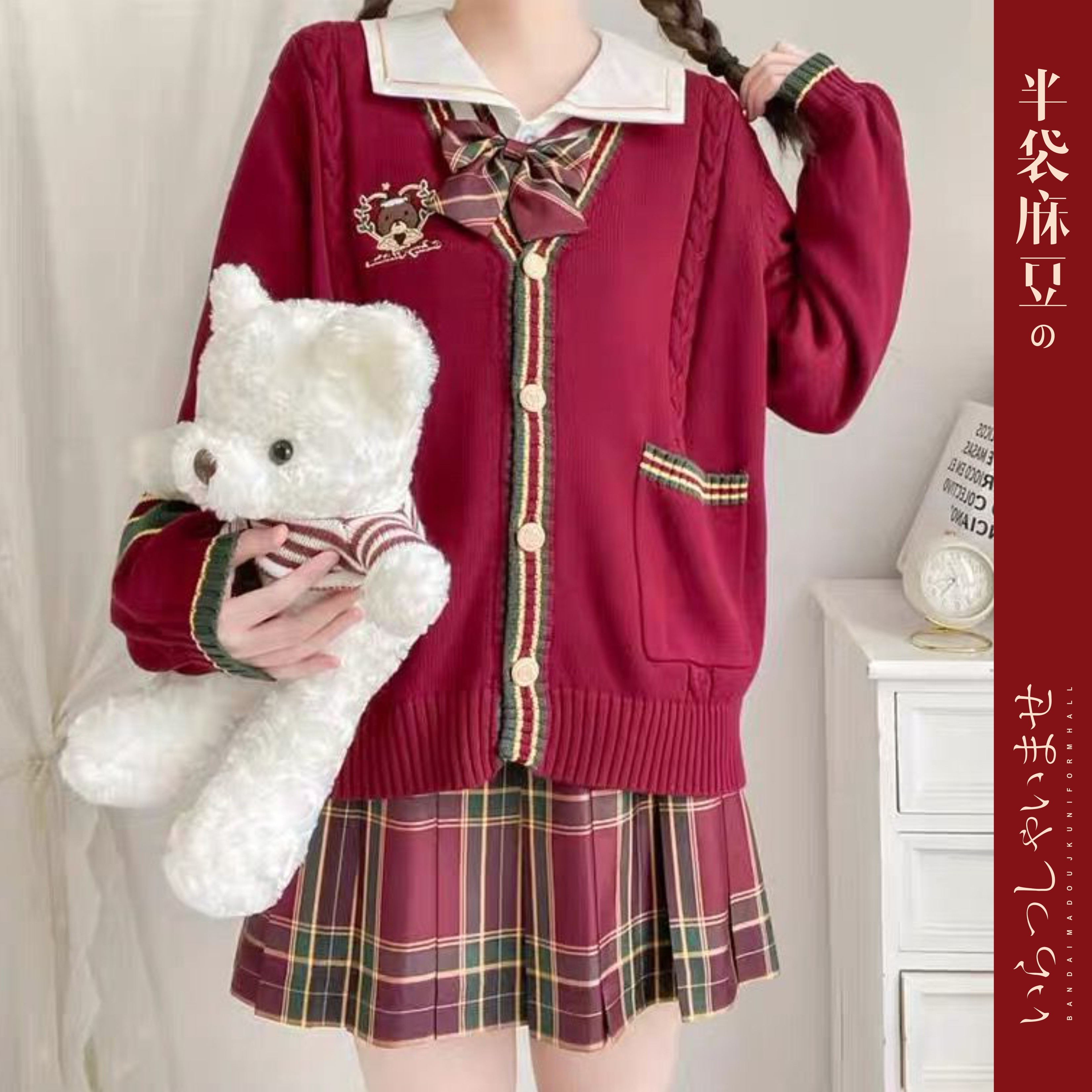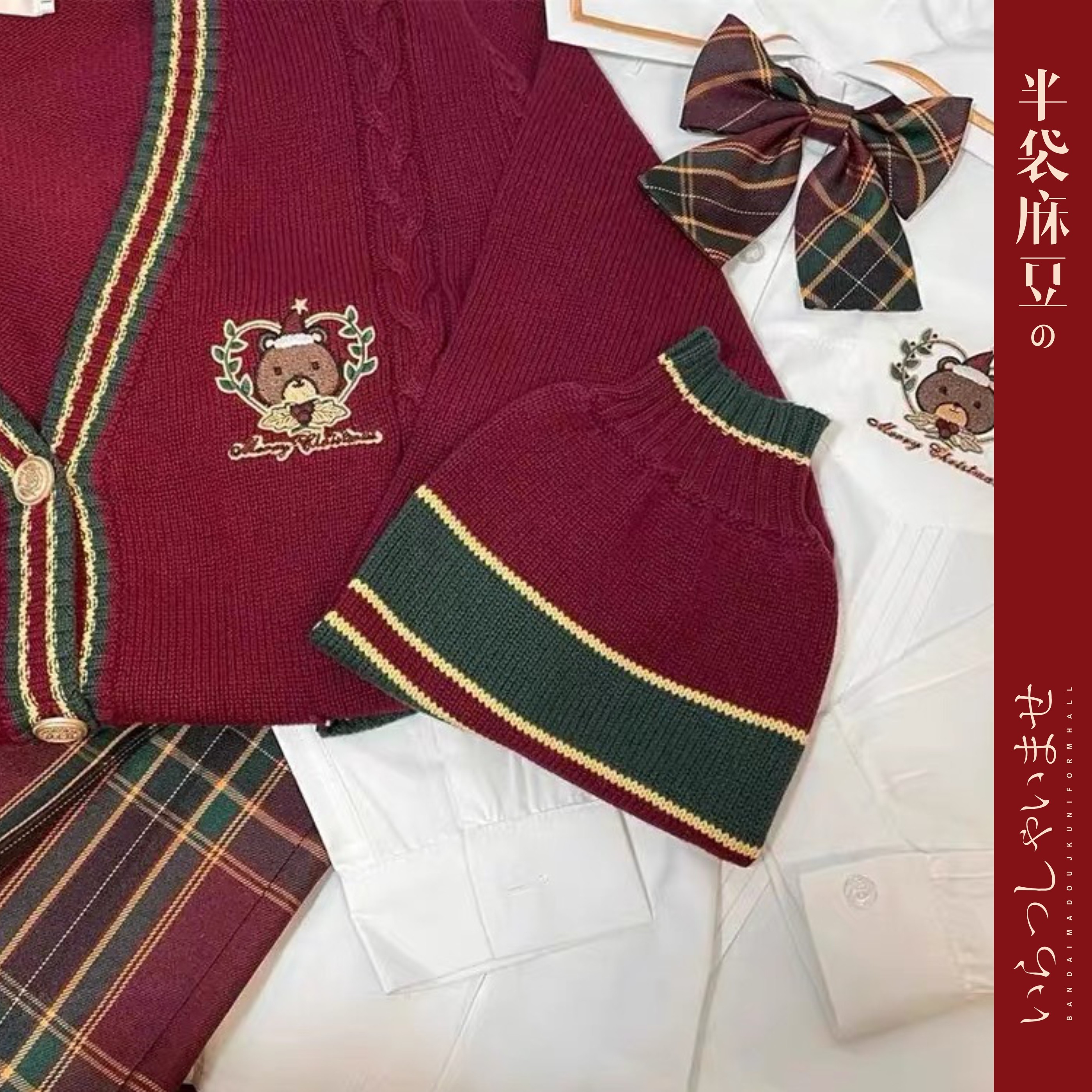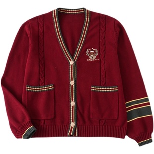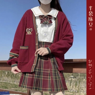格裙外套装 2025新年款 圣诞红色毛衣女日系学院jk制服针织V领开衫
