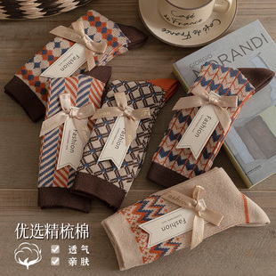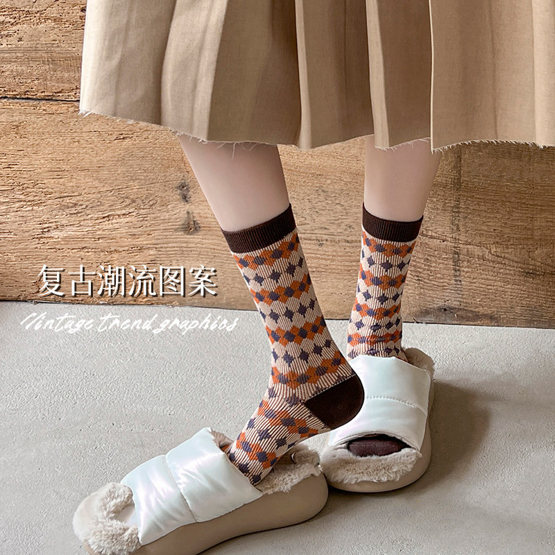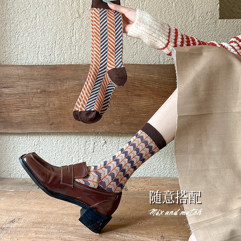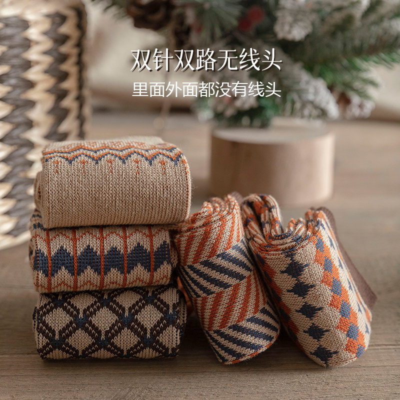 费尔岛中筒袜女袜堆堆袜秋季 双针双路长袜复古风穿搭ins潮 款