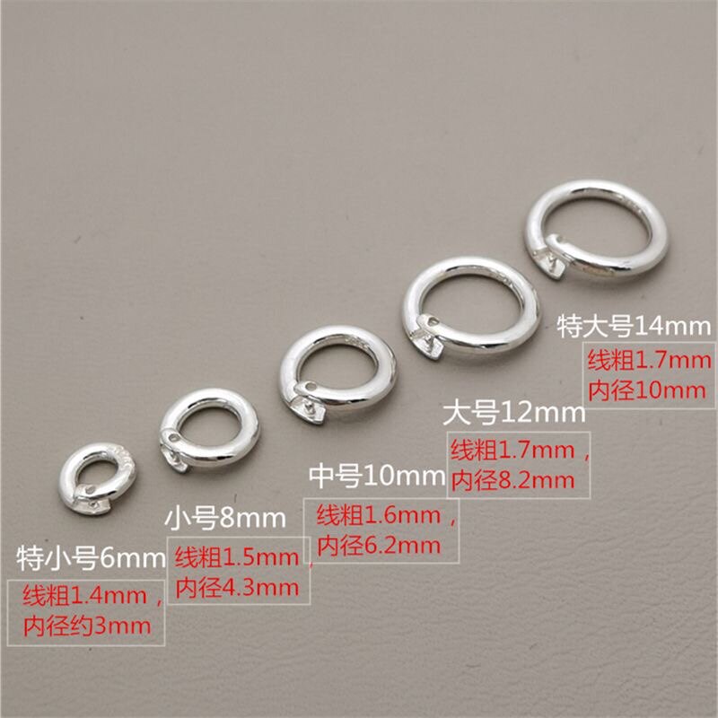 925纯银圆圈圆环扣头连接吊坠项链手链挂配件DIY扣子加粗狼牙扣