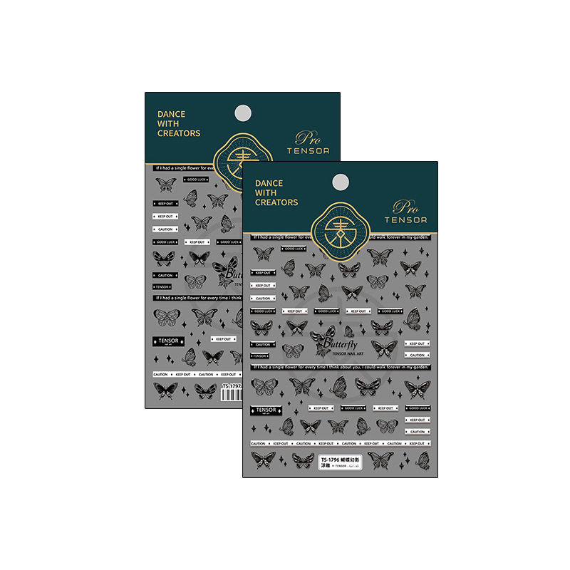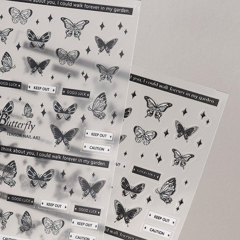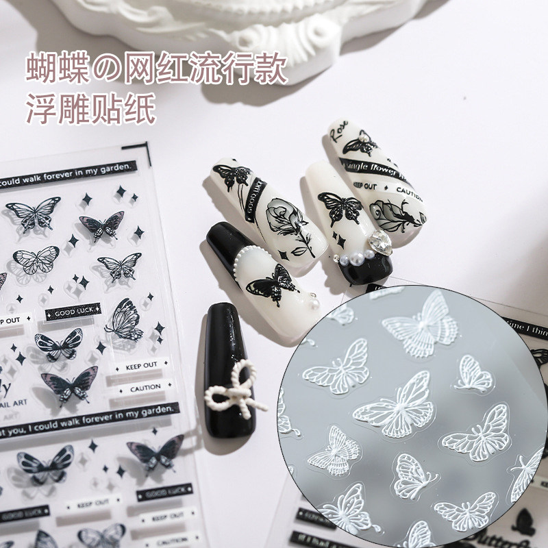 Magico美甲浮雕贴纸立体流行暗黑蝴蝶字母白星茫平面软薄指甲贴饰