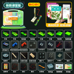电路实验器材小学四年级下册科学电学实验箱六年级材料套装 物理电磁铁实验盒串联并联简单点亮灯泡暗盒小学生