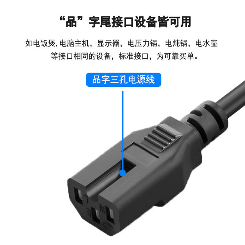 品字电源线国标纯铜10A三孔电饭煲电脑打印机0.751.5平方AC插头线