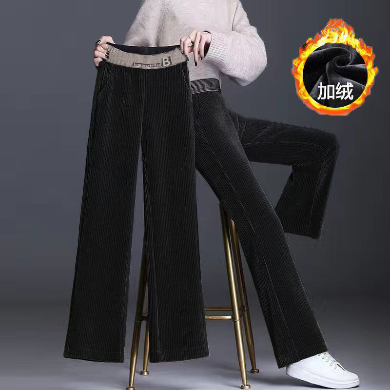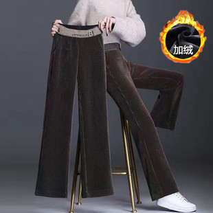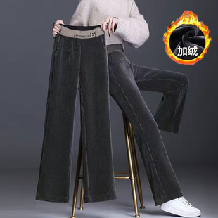 宽松垂感直筒裤 新款 女高腰显瘦休闲裤 子女灯芯绒阔腿裤 秋冬加绒裤