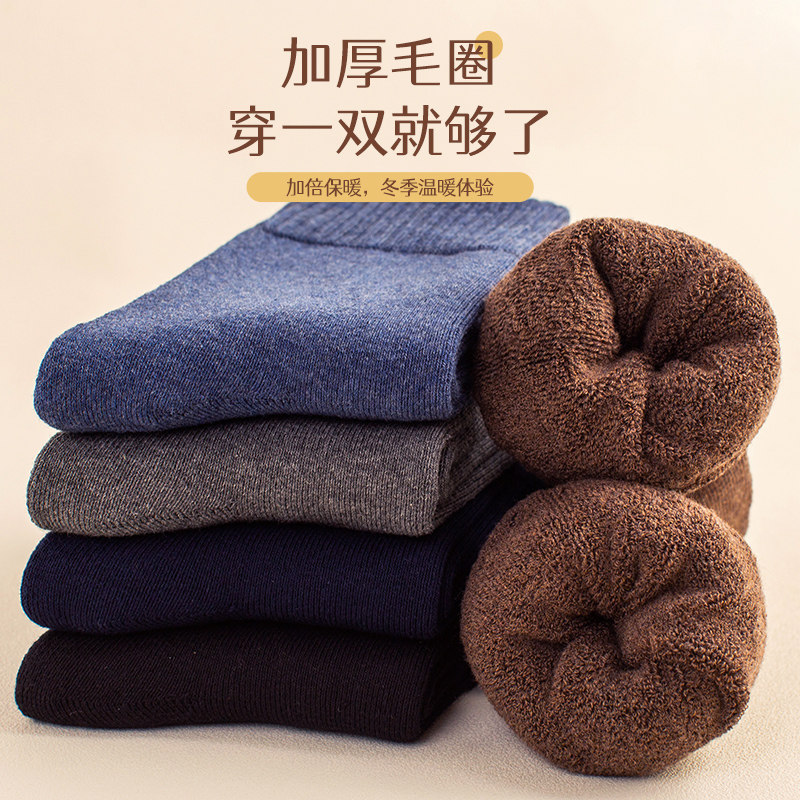 袜子女秋冬季 含羊毛棉袜保暖毛圈长筒袜 加绒加厚中筒雪地袜子女款