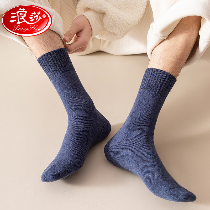 袜子男冬中筒袜长筒长袜黑色加厚保暖加绒男士 棉袜冬天 高筒秋冬季