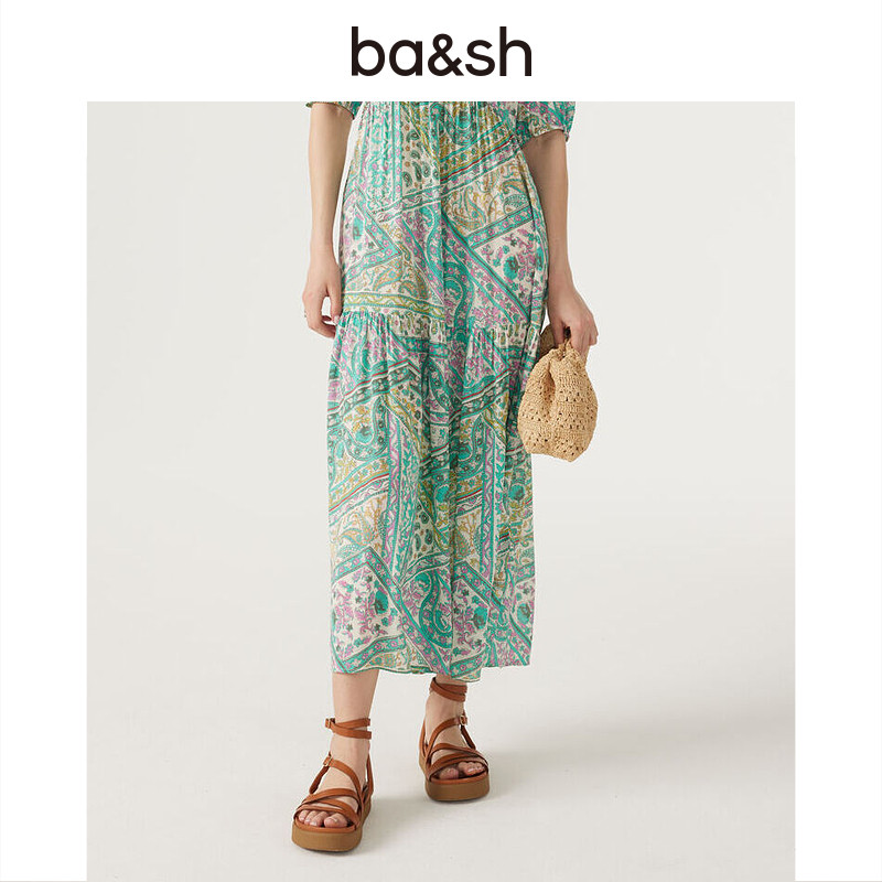 bash夏季 茶歇气质连衣裙1E23FALB 多巴胺穿搭波西米亚度假法式