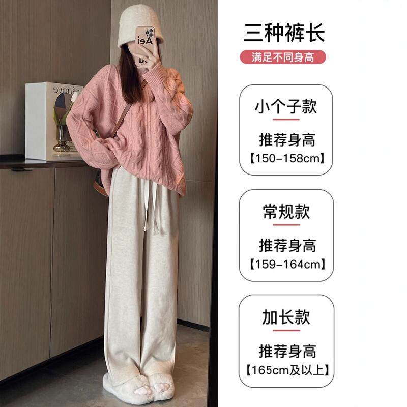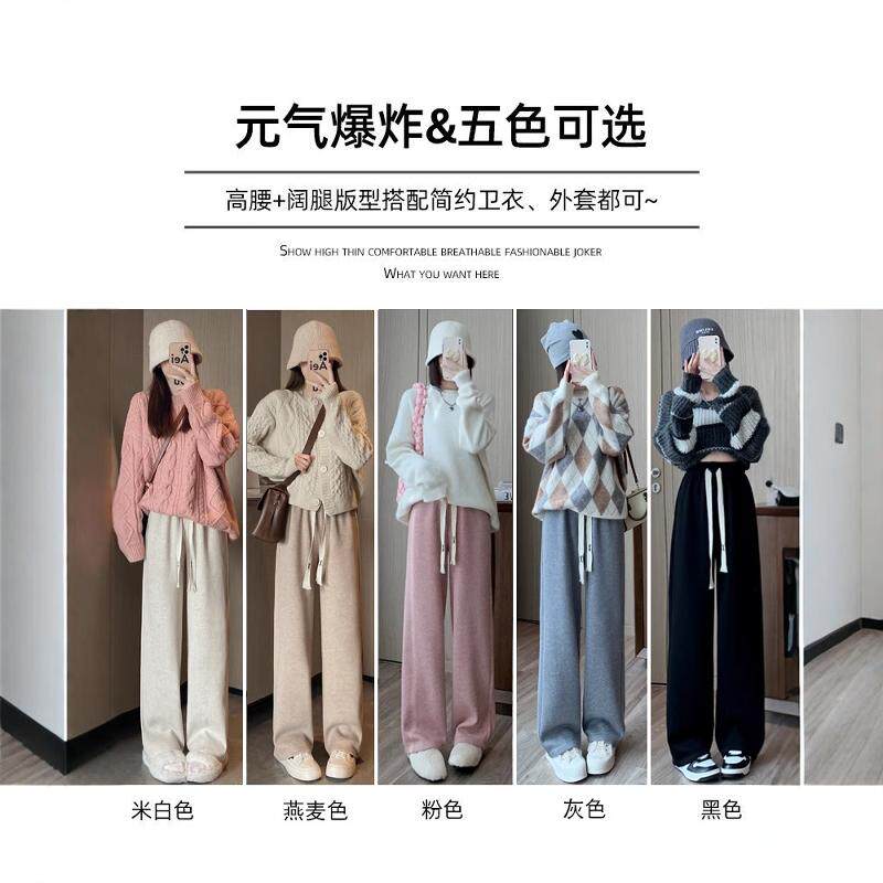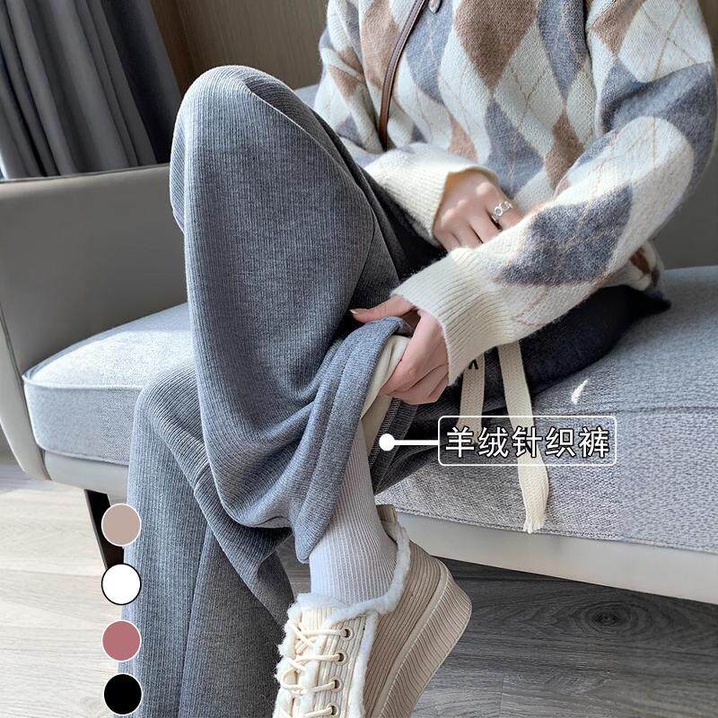 休闲秋冬加绒裤 白色针织裤 阔腿裤 高腰直筒窄版 子 女春秋2025年新款