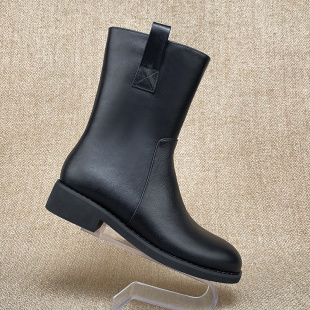 浓情漫宇2024秋冬简约头层牛皮粗跟中筒靴子加绒保暖真皮靴女短靴