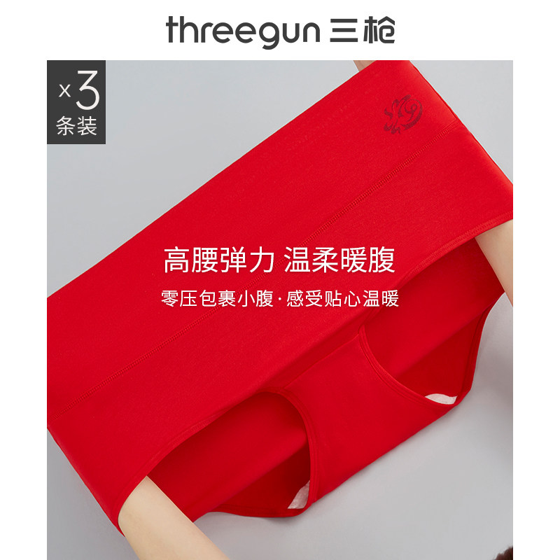 女高腰本命年马年红色好运纯棉三角裤 三枪内裤 抗菌新婚礼物 3条