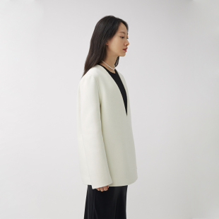 V字领休闲长袖 秋冬新款 清仓微瑕 羊毛外套女 断码