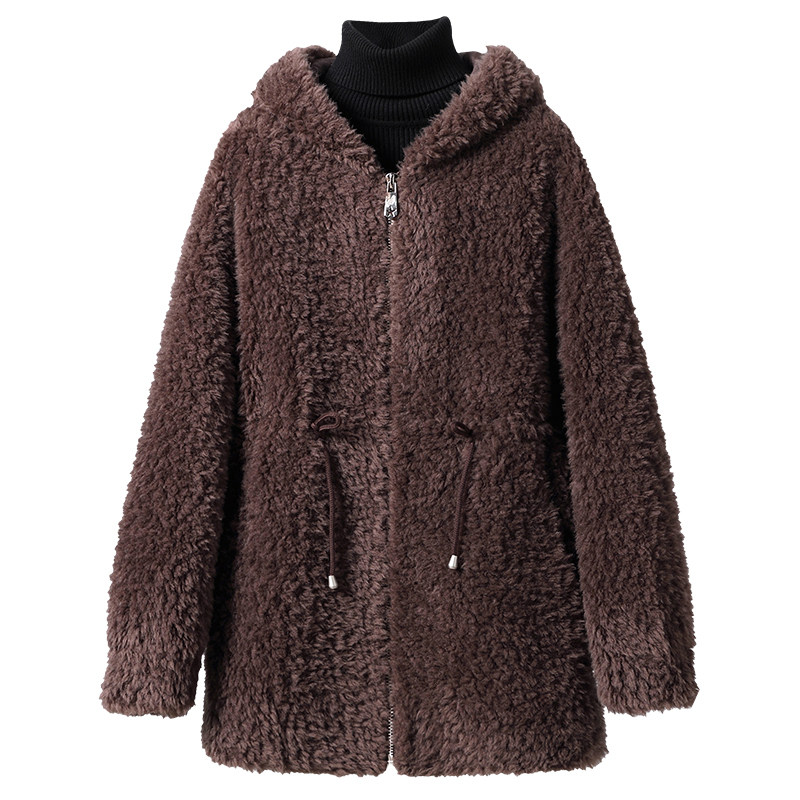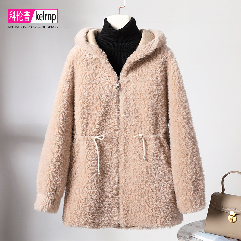 羊剪绒大衣女2026冬新中长款 海宁羔羊毛颗粒皮草外套 连帽气质时尚