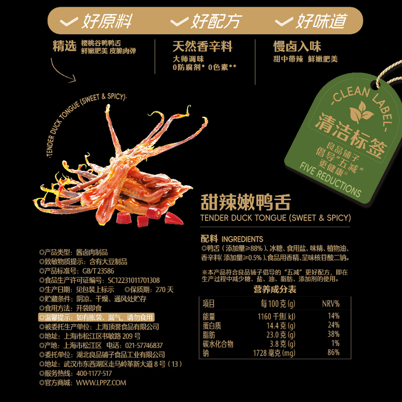 良品铺子甜辣嫩鸭舌40g酱鸭舌头小零食小吃卤味鸭肉 满减专区
