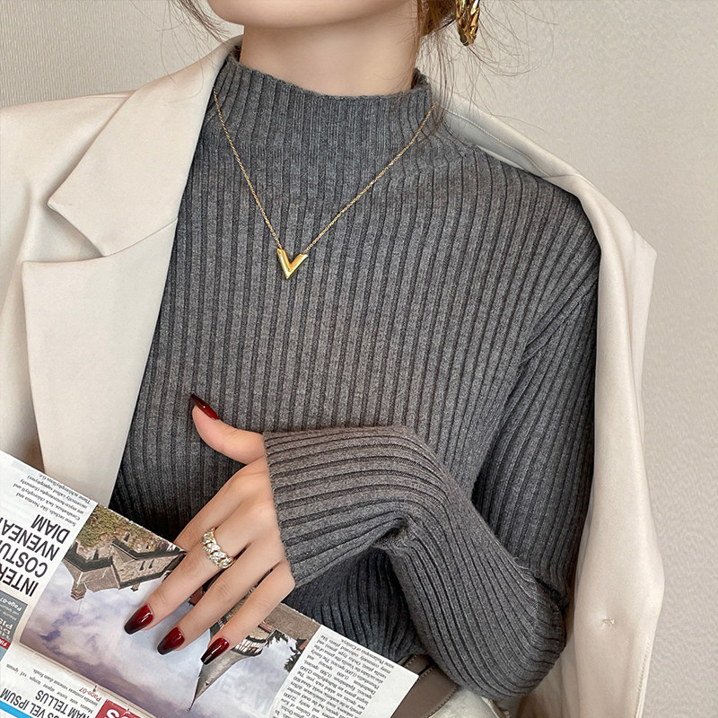 洋气上衣 春秋内搭高级感修身 红色针织毛衣女2026新款 半高领打底衫