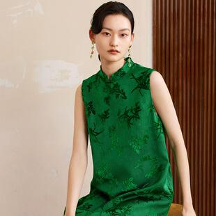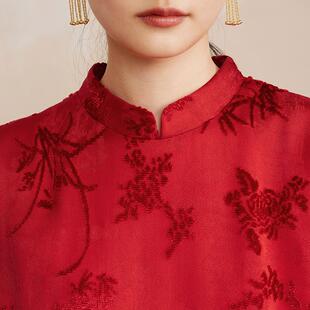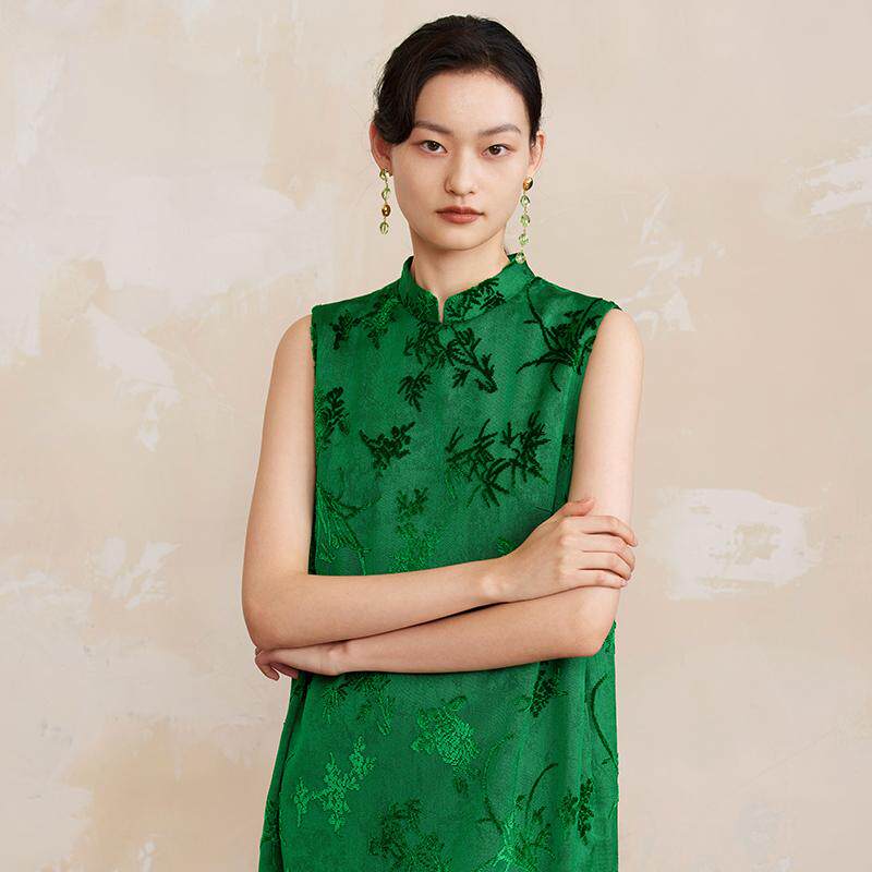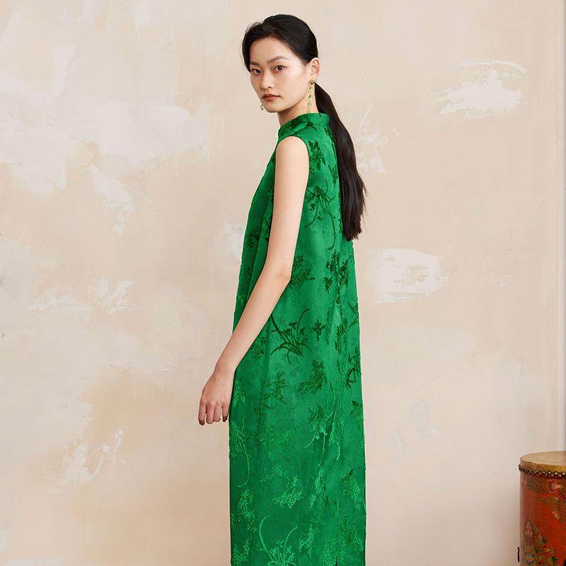 国风复古口袋开叉长裙 提花割绒花苞连衣裙女新中式 如意连 熹洵