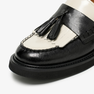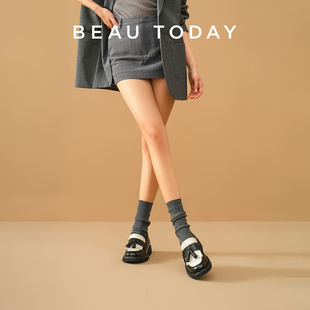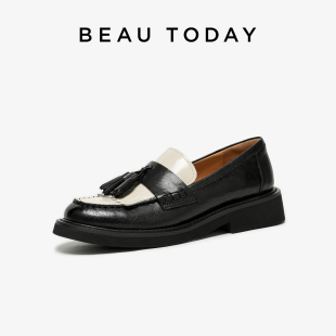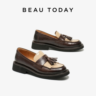 增高女鞋 一脚蹬单鞋 女棕色真皮英伦风小皮鞋 BeauToday厚底乐福鞋