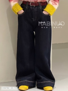 宽松阔腿裤 女童牛仔裤 加厚中大童洋气时髦女孩冬装 子秋冬季 加绒裤
