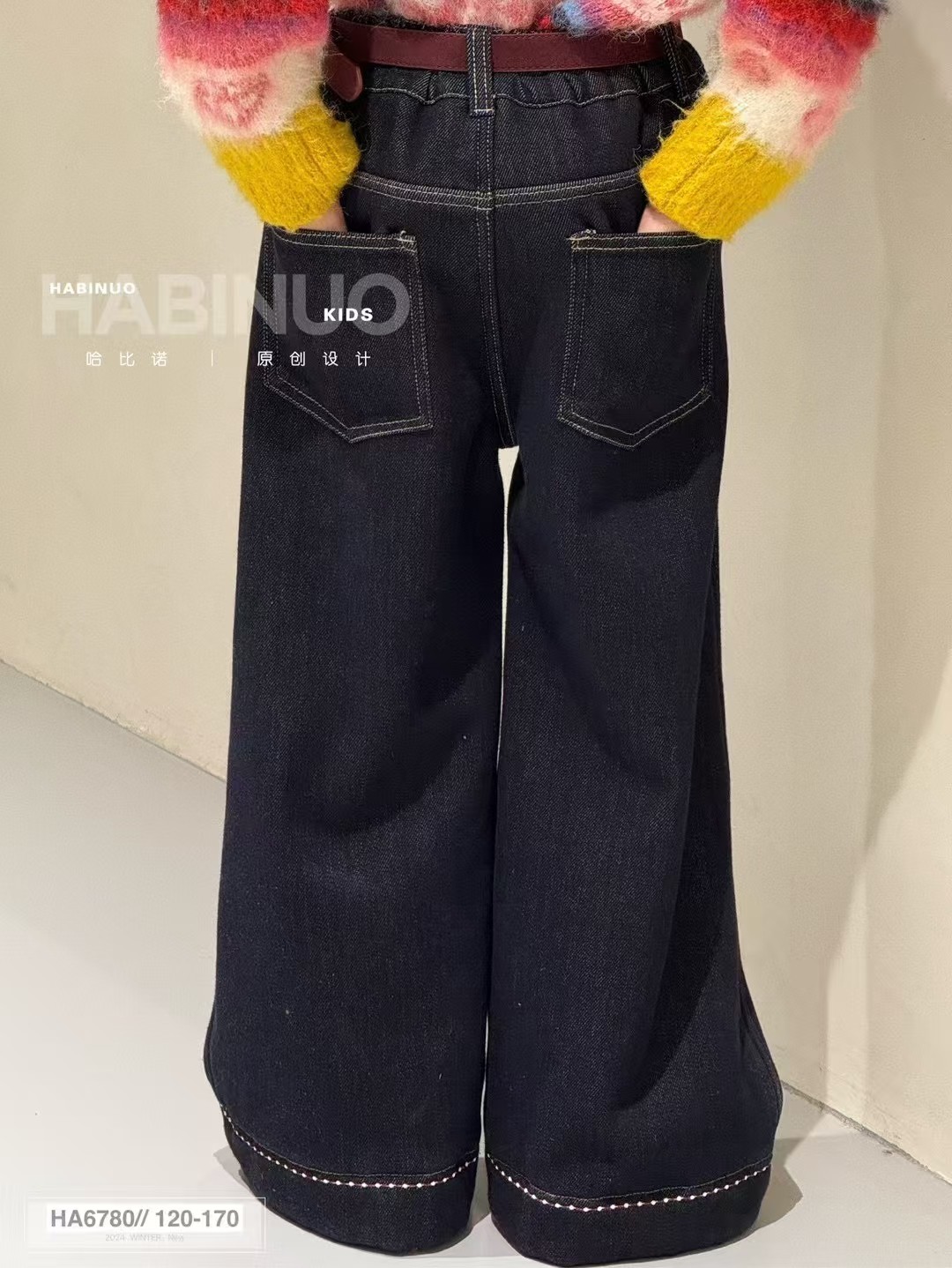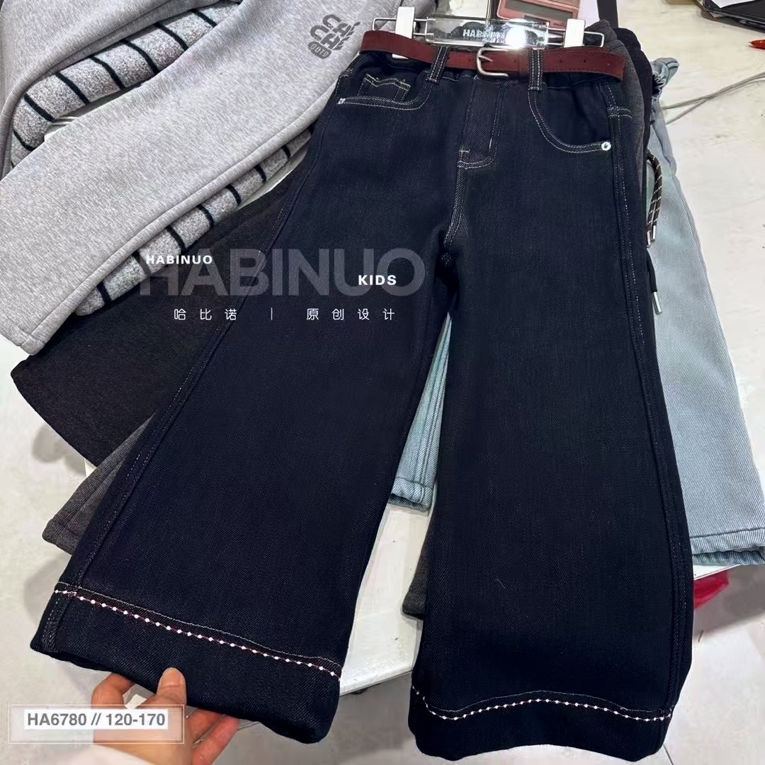 儿童裤 女童加绒裤 子2025秋冬新款 牛仔裤 子 中大童阔腿裤 植木童装