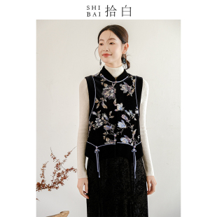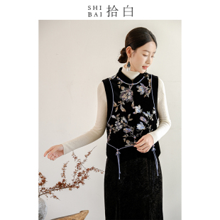 女重工珠片绣优雅丝绒马甲上衣 原创设计新中式 SHIBAI拾白 题玉兰