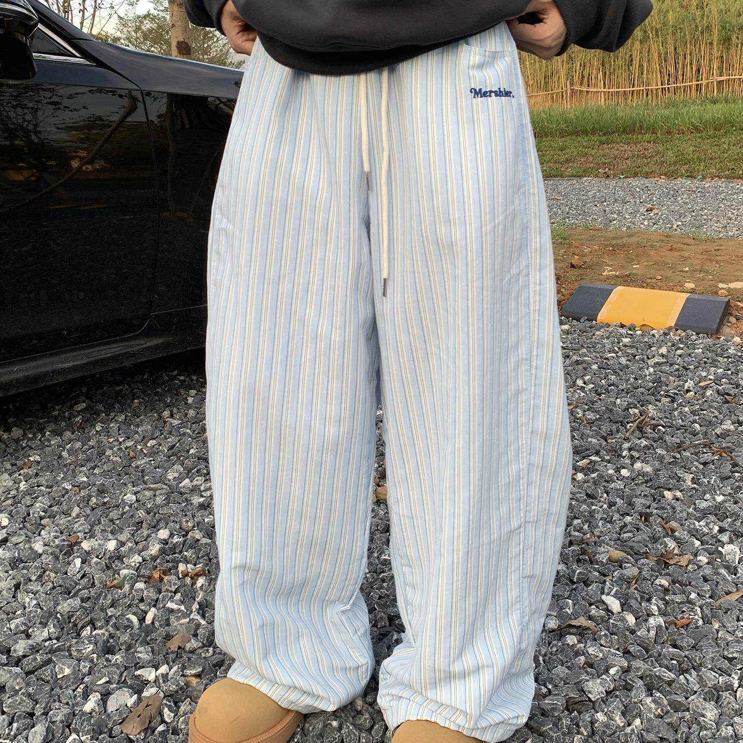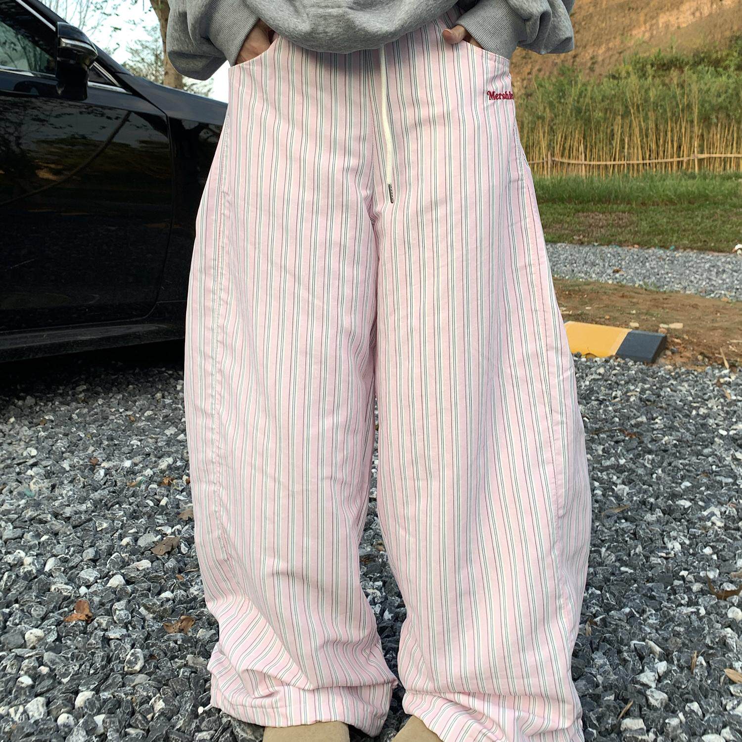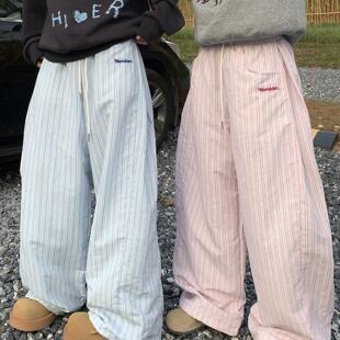 男女阔腿直筒情侣休闲长裤 GTGA 条纹慵懒风加厚棉裤 美式 2024冬季