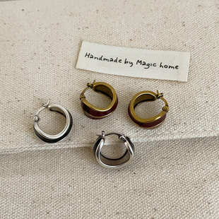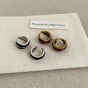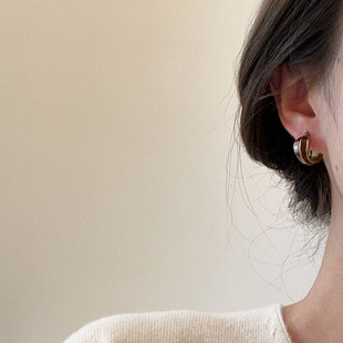 柴夫工作室 日韩风极简百搭素金小耳扣复古光面百搭通勤耳环 E155