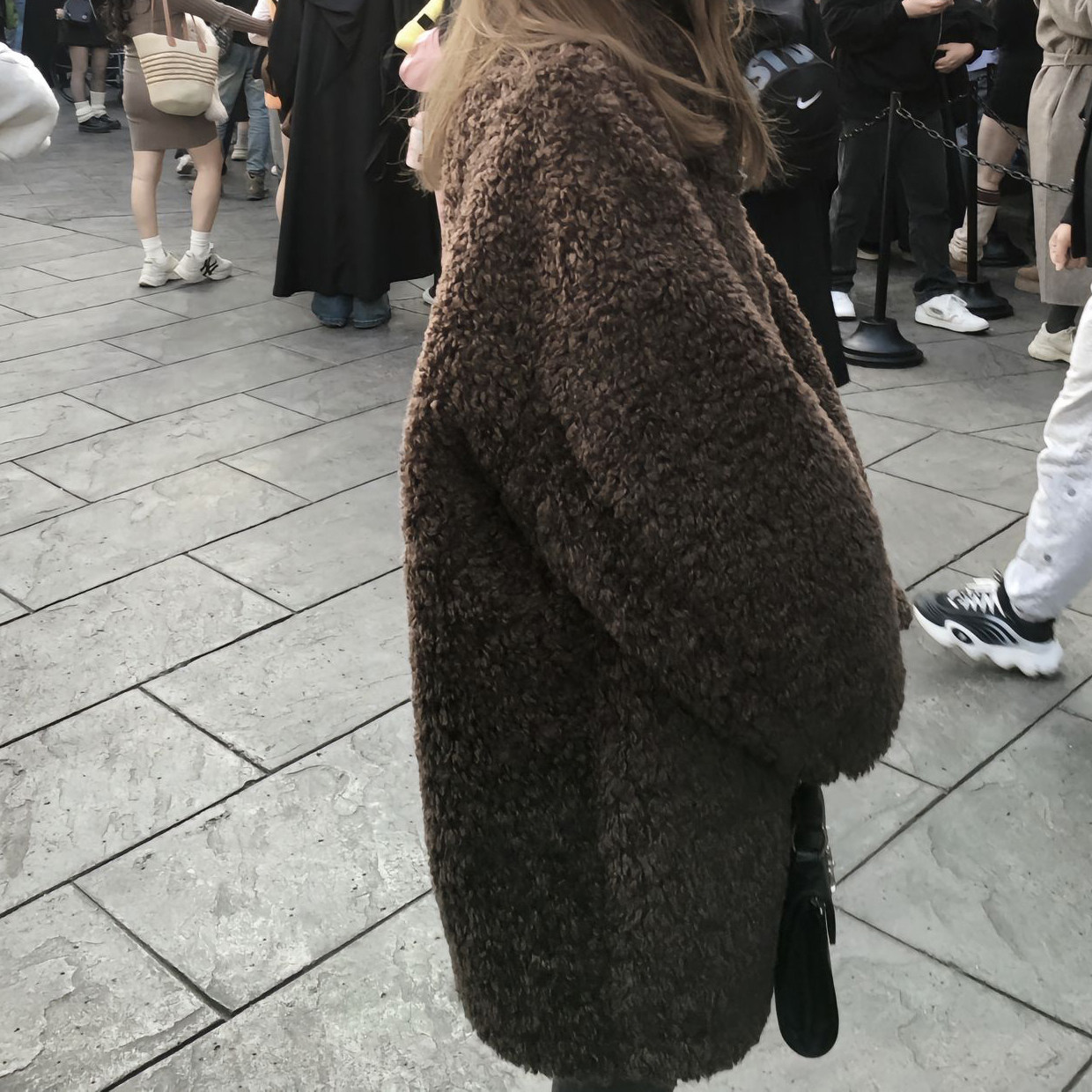朗姿羊毛设计感仿皮草大衣2025年冬季 羊毛卷 新款 王楚然同款