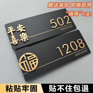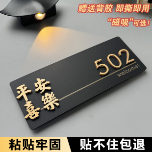 门牌定制房间民宿平安喜乐房号 饰门牌号高级感轻奢创意高档酒店挂牌数字贴2025年新款 门牌号码 牌家用入户门装