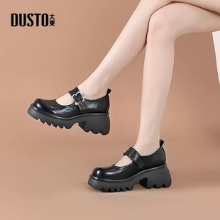 休闲粗跟高跟复古圆头小皮鞋 大东乐福鞋 时尚 新款 24Q1137 24秋季