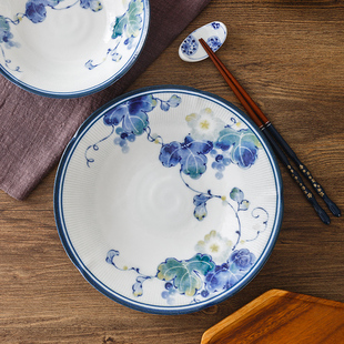釉下彩〖加厚大菜碗〗8.5英寸陶瓷圆形深盘汤盘复古实用菜盘 微瑕