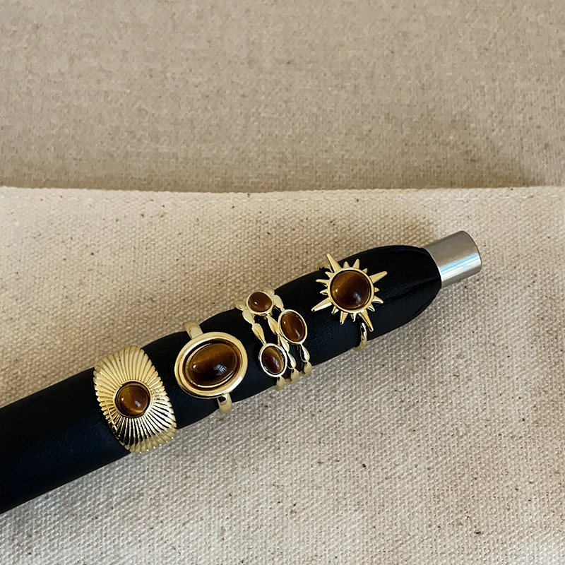 复古高级感虎眼石金属开口戒指女小众独特个性 百搭指环戒子 时尚