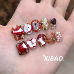 纯手工高质量指甲贴片 美甲2026新款 苹果穿戴甲短款 精致重工穿戴款