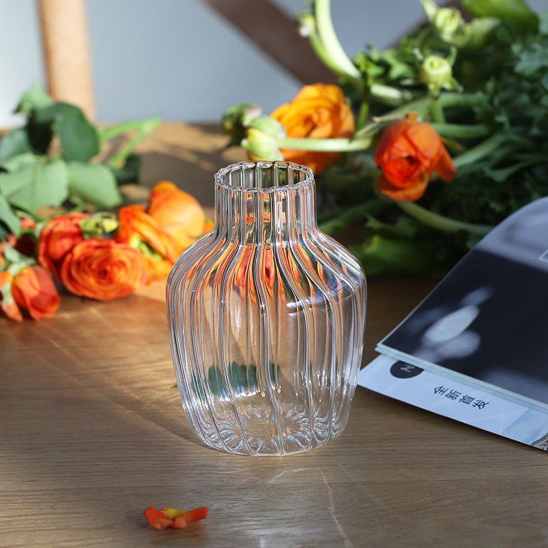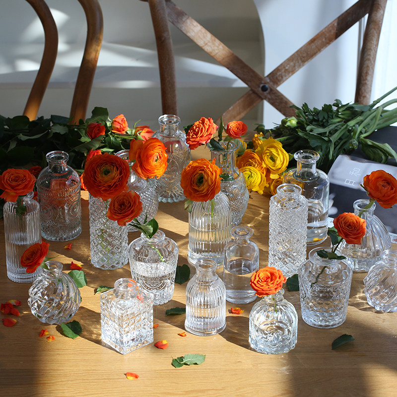 网红迷你透明玻璃花瓶摆件客厅插花鲜花水养ins风法式 轻奢小花瓶