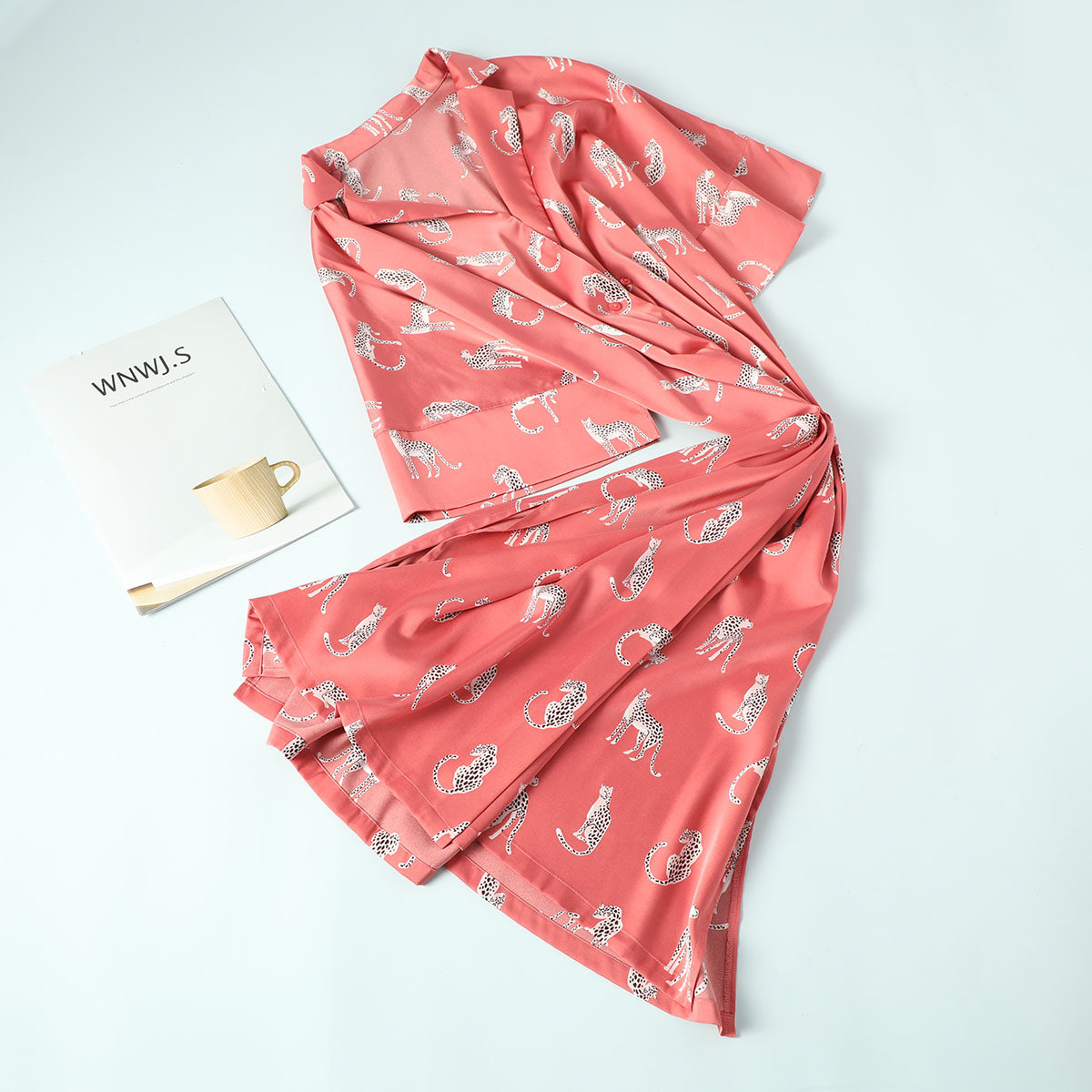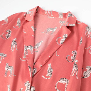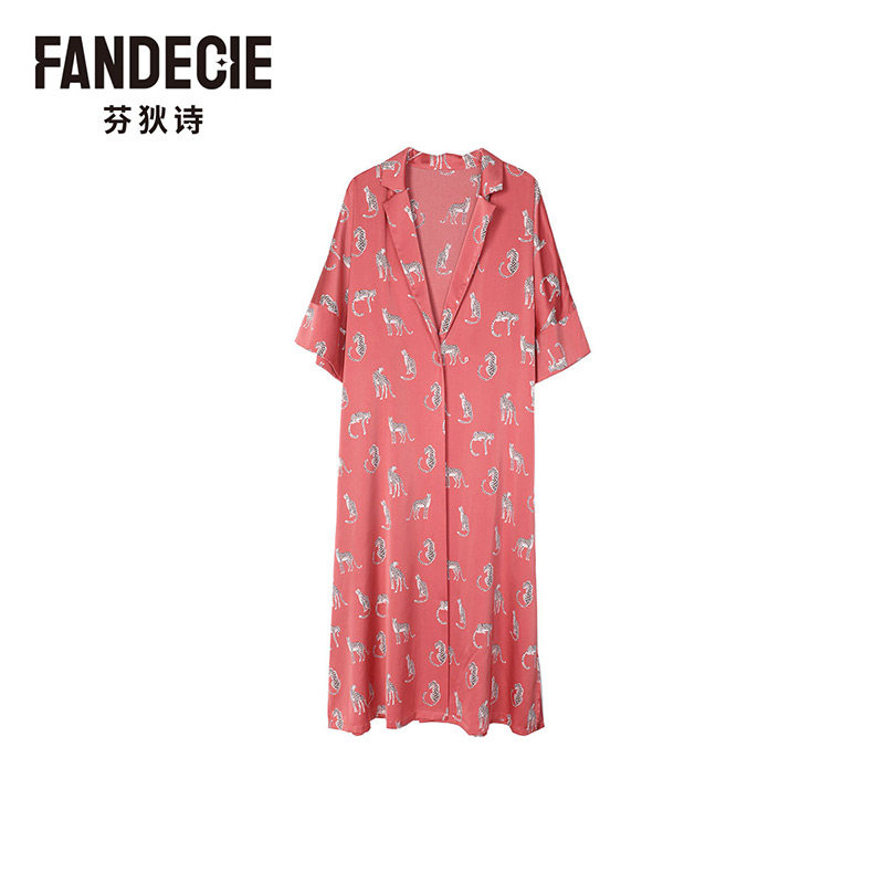 芬狄诗印花色丁时尚 型两侧开衩睡袍FL00201 家居服女舒适宽松H版