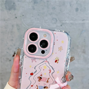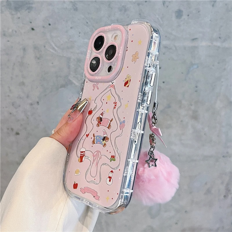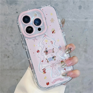 粉色圣诞树小狗羽纱泡芙适用苹果16pro手机壳iPhone15max13小米14华为mate60p70x100k50nova12荣耀200Reno11