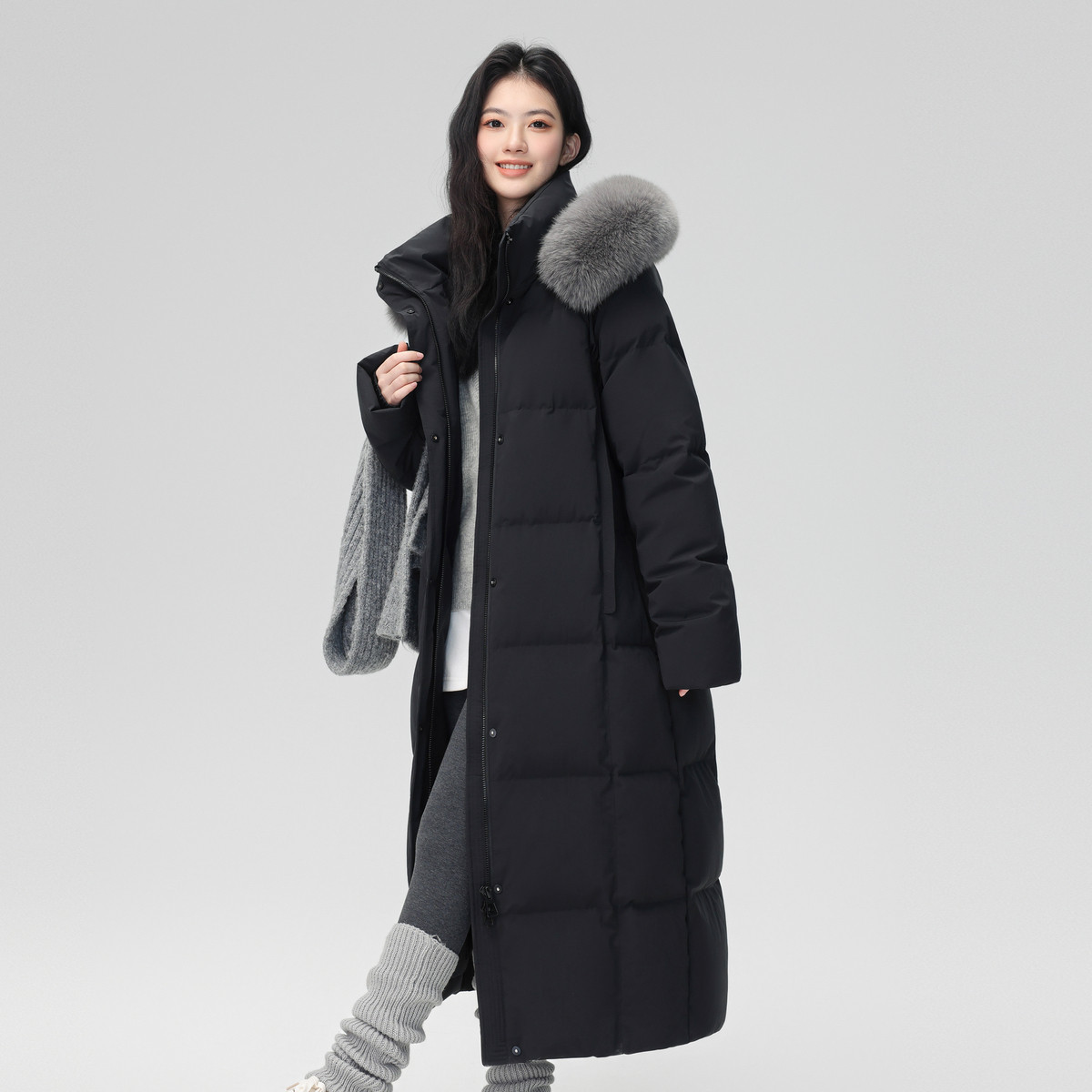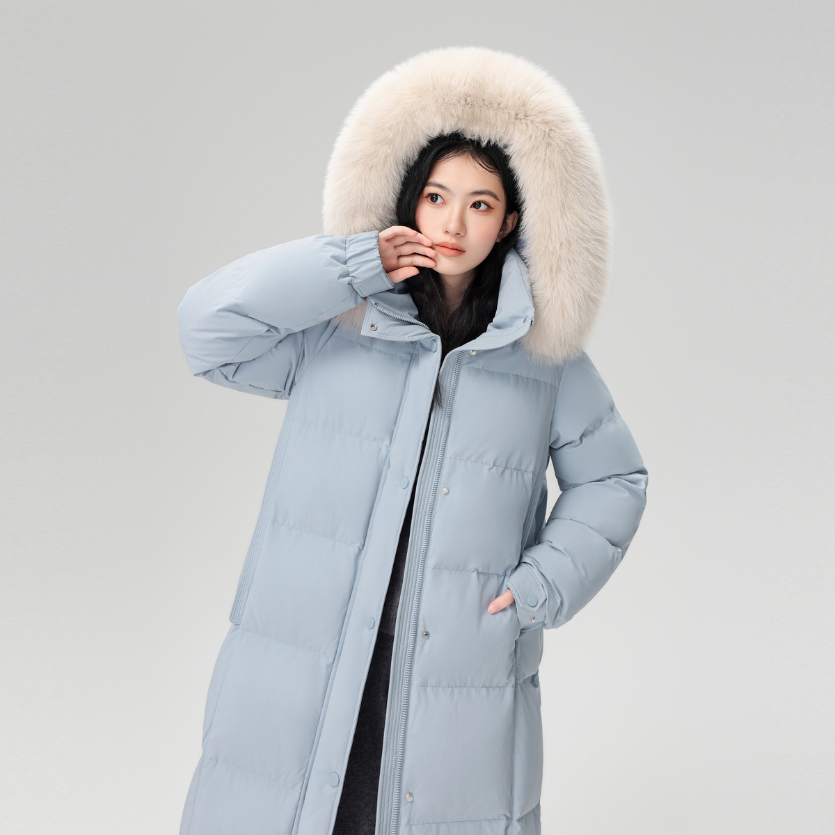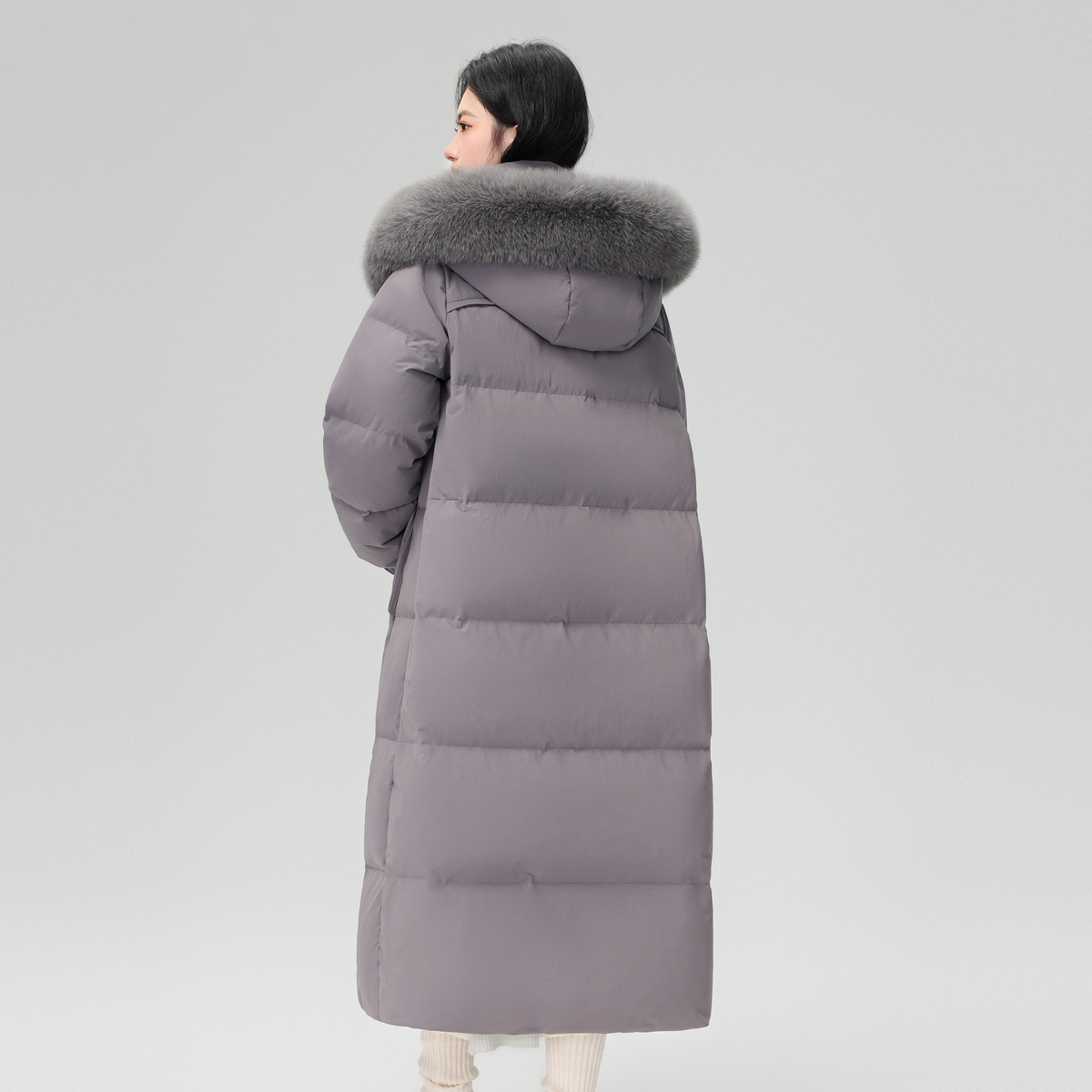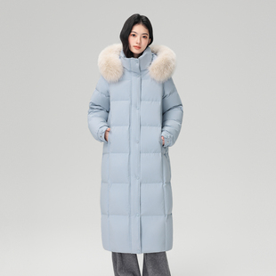 雪中飞2025冬新款 狐狸毛领羽绒服高充绒优雅灰重磅温柔 女士长款
