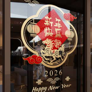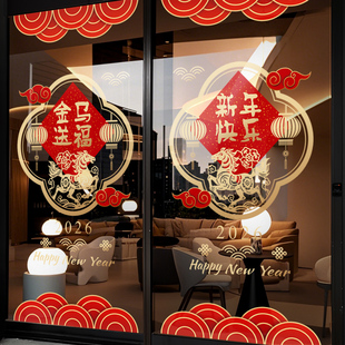 新年装 饰窗花马年春节创意窗贴2026过年店铺橱窗静电玻璃贴门贴纸