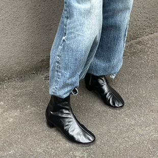 圆头女拉链短靴低粗跟袜 2025新款 现货homework atelier