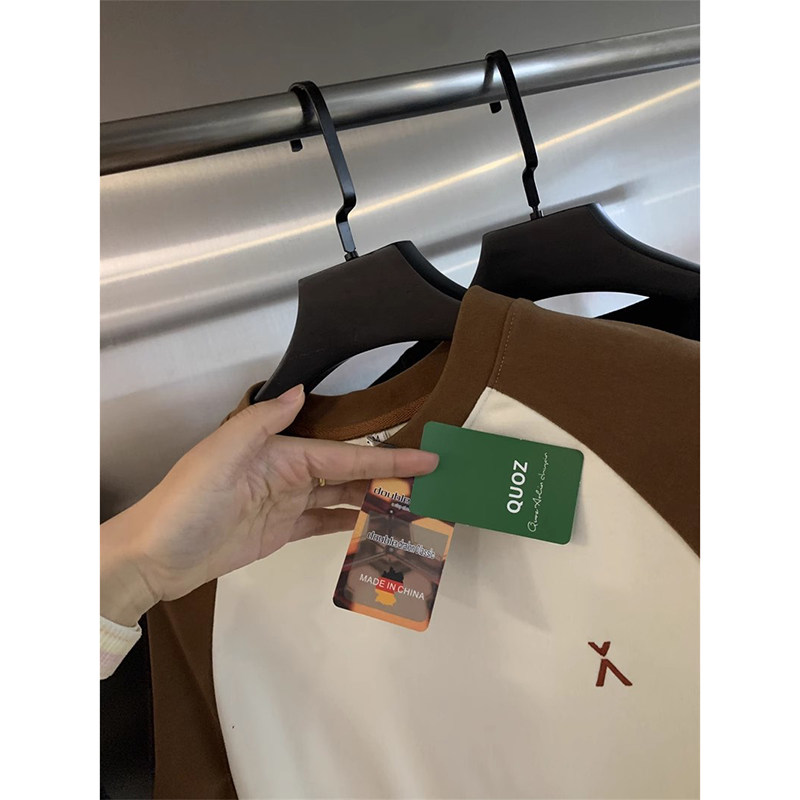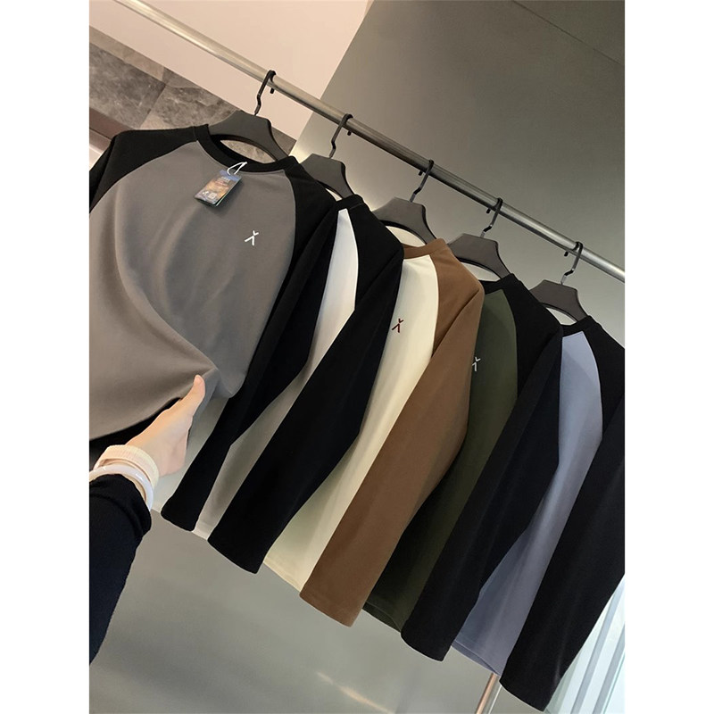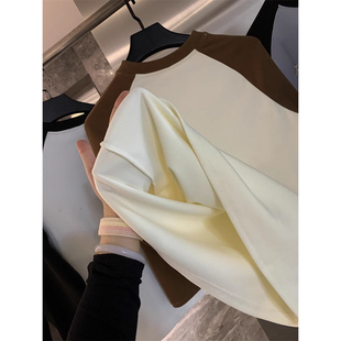 T恤打底衫 性价比炒高 秋冬宽松撞色拼接长袖 情侣款 上衣 双面德绒